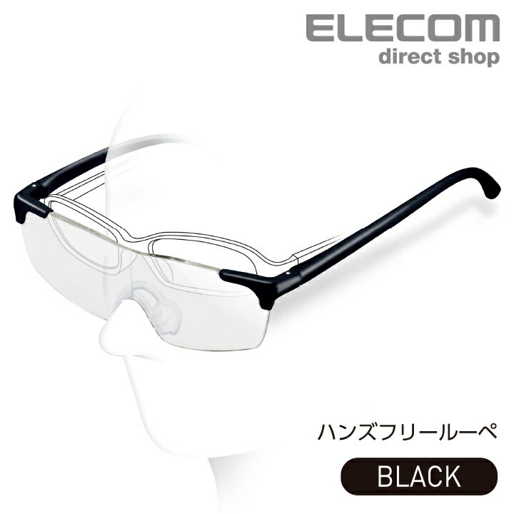 ハンズフリールーペ(1.6倍 黒) メガネタイプ クリアレンズ 柔らかフレームを採用 ブラック L-BUC16-L02BK